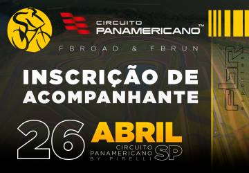 ATENÇÃO! INSCRIÇÃO APENAS PARA ACOMPANHANTES DOS EVENTOS: - 2º Etapa - Desafio 2 Horas 2º GP FBRoad Circuito Panamericano By Pirelli - FBRUN Circuito Panamericano by PIRELLI O valor à ser pago é R$ 10,00.